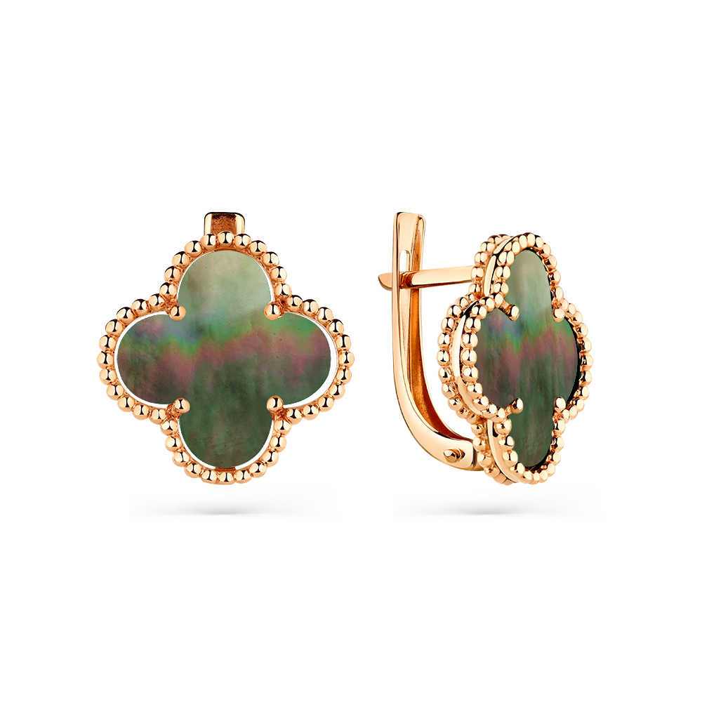 —Серьги «Клевер» из красного золота с перламутром