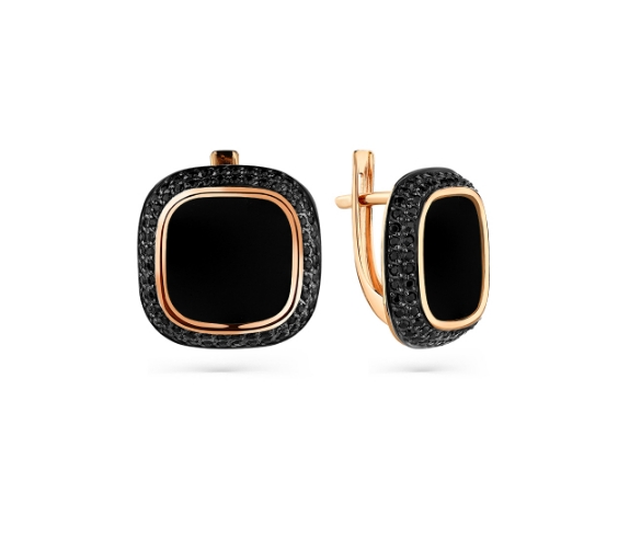 Элегантные серьги из красного золота с черными агатами и фианитами. Двойные дорожки из черных фианитов обрамляют превосходные черные агаты, эффектно дополняя их загадочное сияние. Серьги достойно смотрятся, и станут стильным акцентом классического и вечернего образа. Приобретайте великолепное украшение по выгодной цене в магазинах Мир Золота.