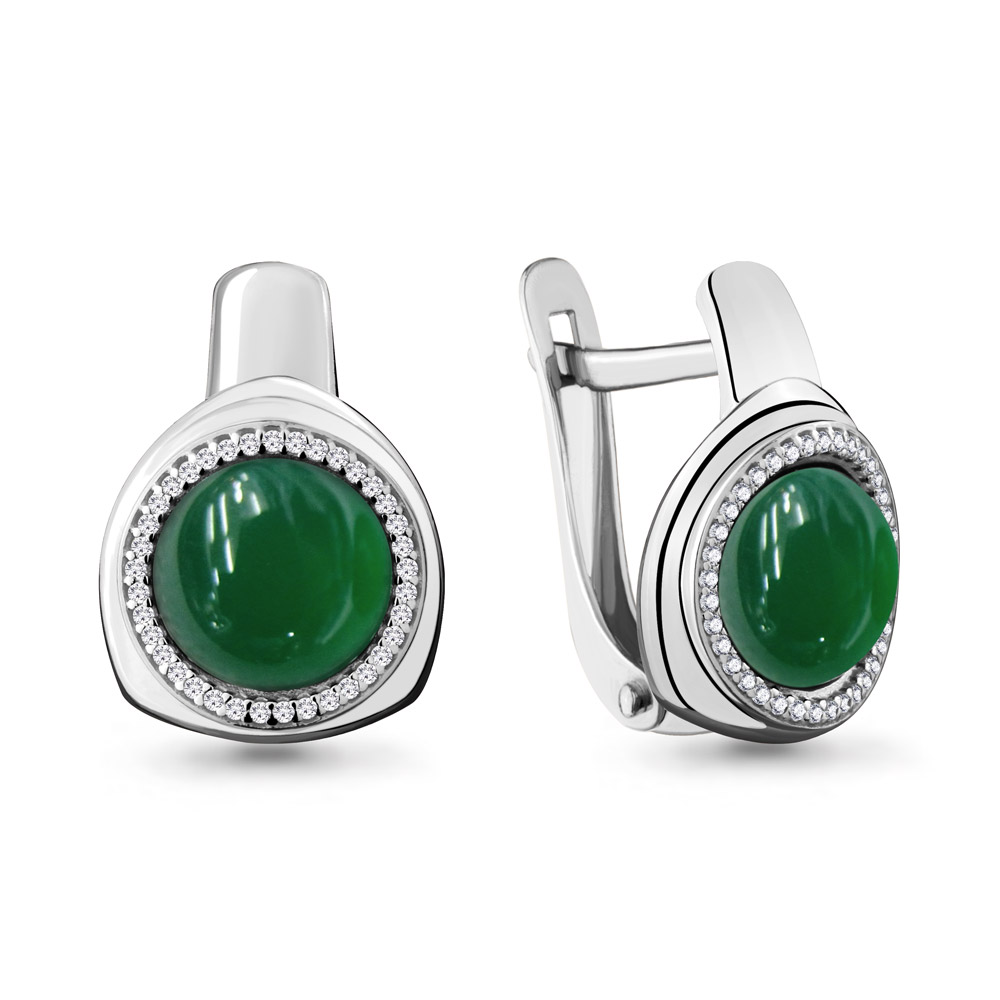 Превосходные серьги с зелеными агатами в окружении искристых фианитов станут главным украшением эффектного женственного образа. Удивительное сияние природных агатов выгодно подчеркнуто ярким блеском родированного серебра и прозрачных фианитов. Элегантное украшение отлично впишется в классические и вечерние образы. Покупайте серебряные серьги по выгодным ценам в магазинах Мир Золота.