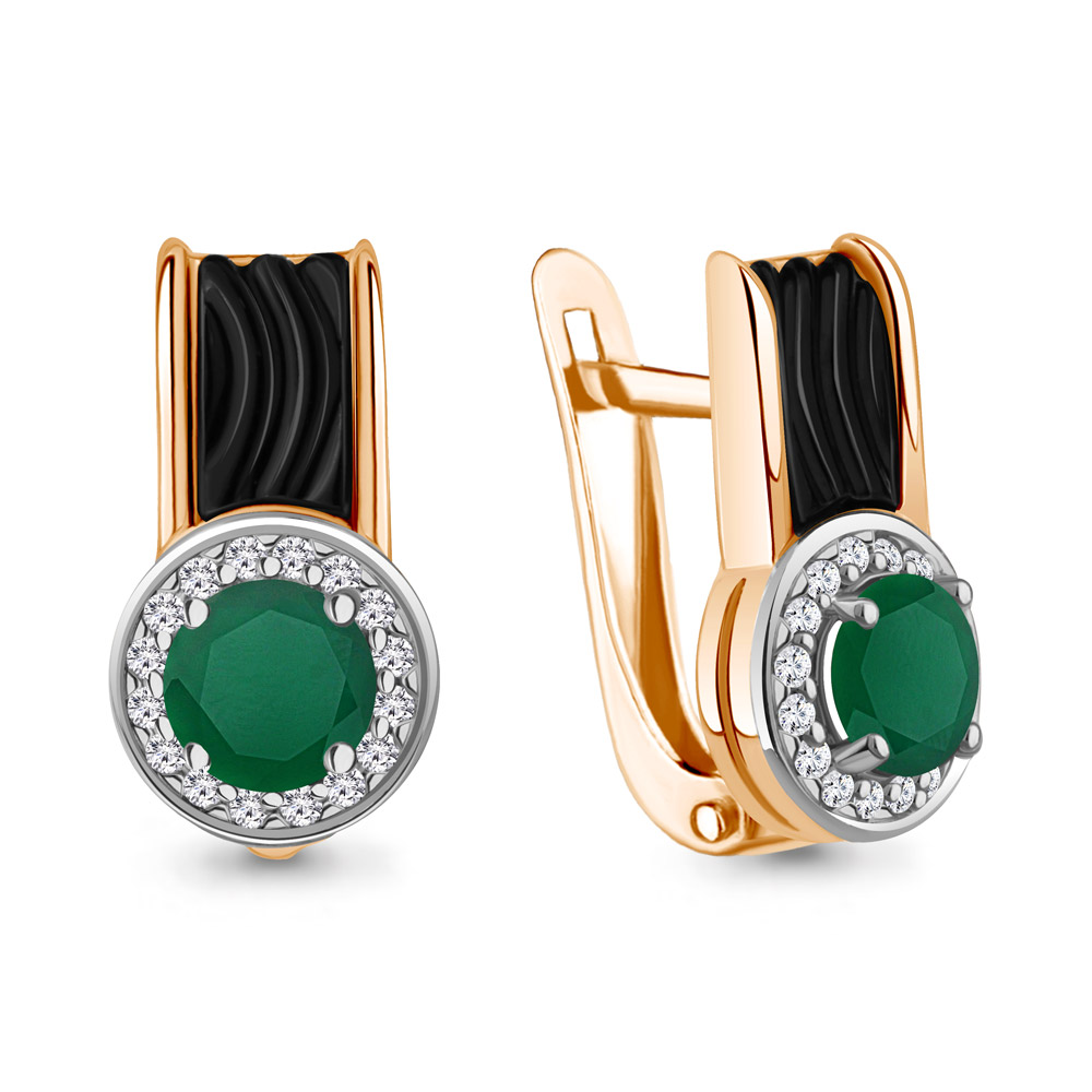 Серьги из серебра с агатами, фианитами и керамическим покрытием