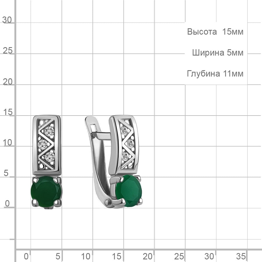 Декоративные серебряные серьги классического стиля с природными зелеными агатами и кристальными фианитами, выгодно подчеркнутыми блеском родированного серебра, составят идеальное дополнение для повседневного образа, и добавят женскому облику элегантности и очарования. Приобретайте серебряное украшение по выгодным ценам в магазинах Мир Золота.