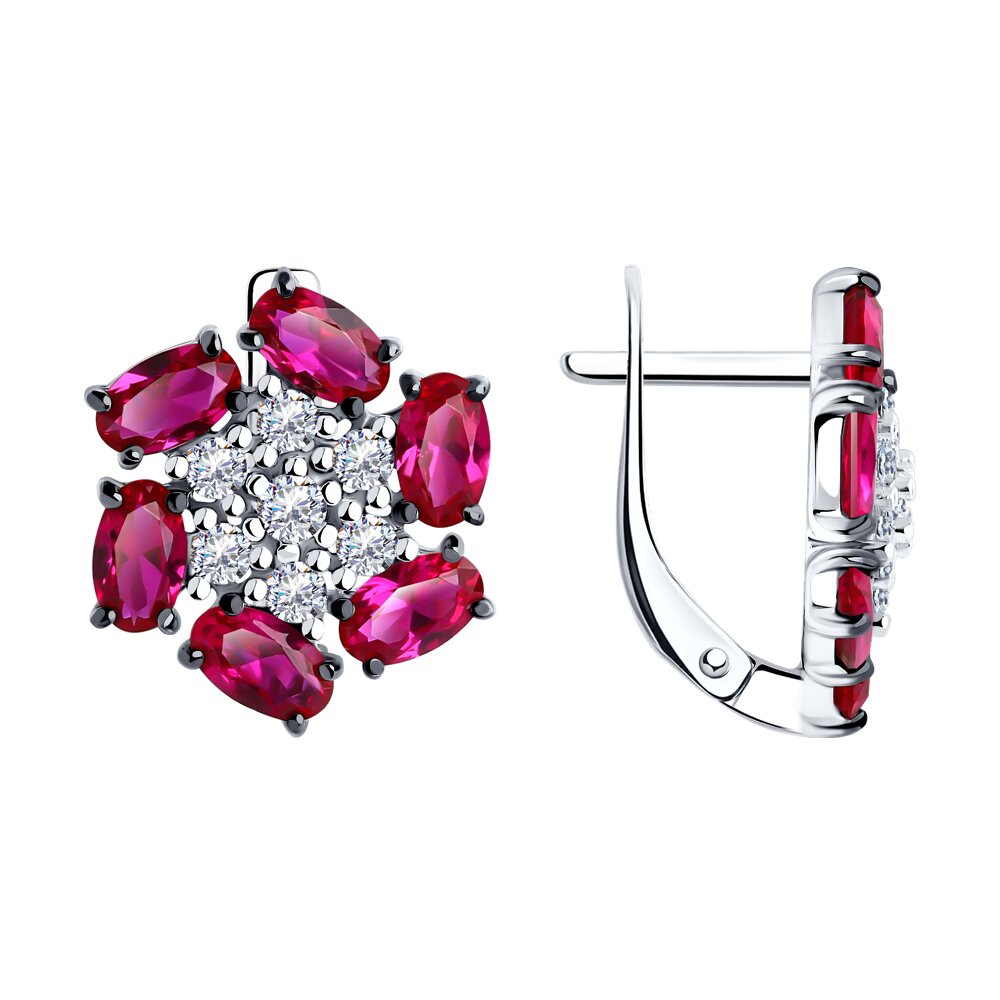 —Серьги из серебра с корундами и фианитами