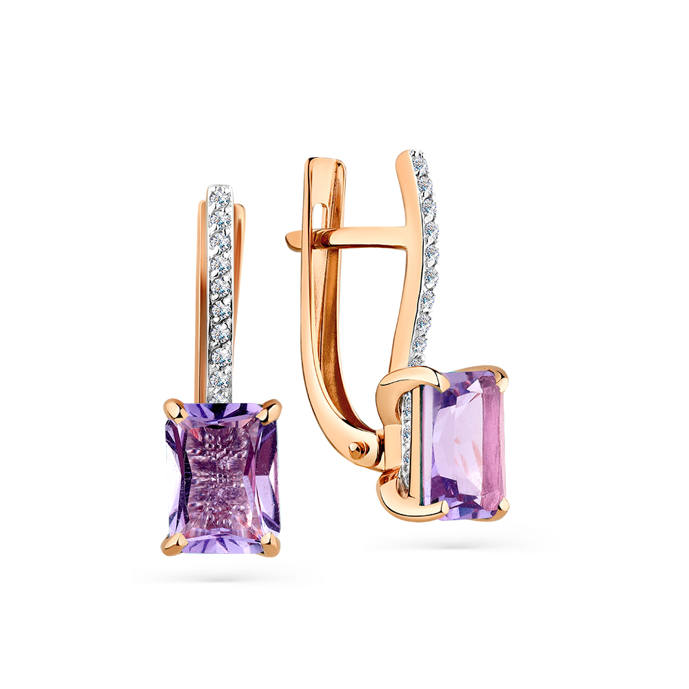 Серьги из красного золота с аметистами и фианитами