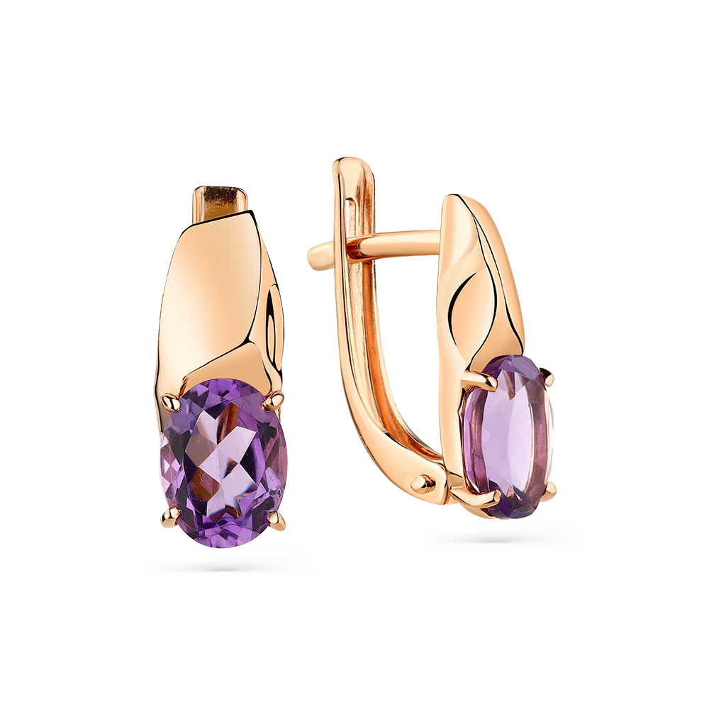 Классические серьги из красного золота 585 пробы с натуральными аметистами станут заметной деталью элегантного женского образ. Украшение с привлекательным сиянием ярких полудрагоценных камней отлично смотрится и обращает на себя внимание. Приобретайте ювелирное украшение для себя или в подарок по выгодной цене в магазинах Мир Золота.