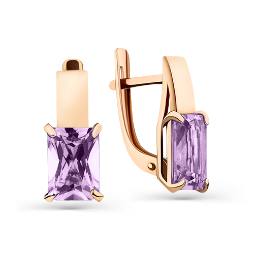 Стильные серьги из красного золота 585 пробы с притягательным сиянием натуральных аметистов эффектной огранки прекрасно смотрятся и комфортны в носке. Привлекательный аксессуар будет достойным подарком для любой женщины, и отлично впишется в классические и современные образы. Приобретайте ювелирное украшение по выгодной цене в магазинах Мир Золота.