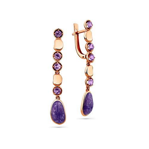 Серьги из красного золота с аметистами и эмалью