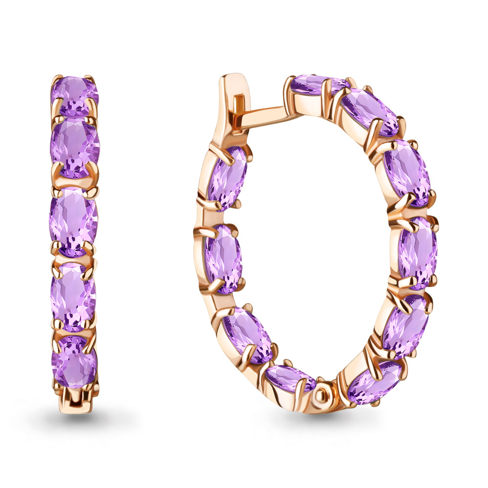 Восхитительные серьги выполнены из красного золота 585 пробы и украшены нежным сиянием натуральных аметистов лавандового оттенка. Золотое украшение смотрится ярко и нарядно, и станет эффектным дополнением вечернего и праздничного образа. Приобретайте ювелирное украшение в подарок по выгодным ценам в магазинах Мир Золота.