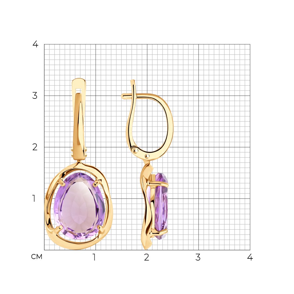 Серьги из красного золота с аметистами