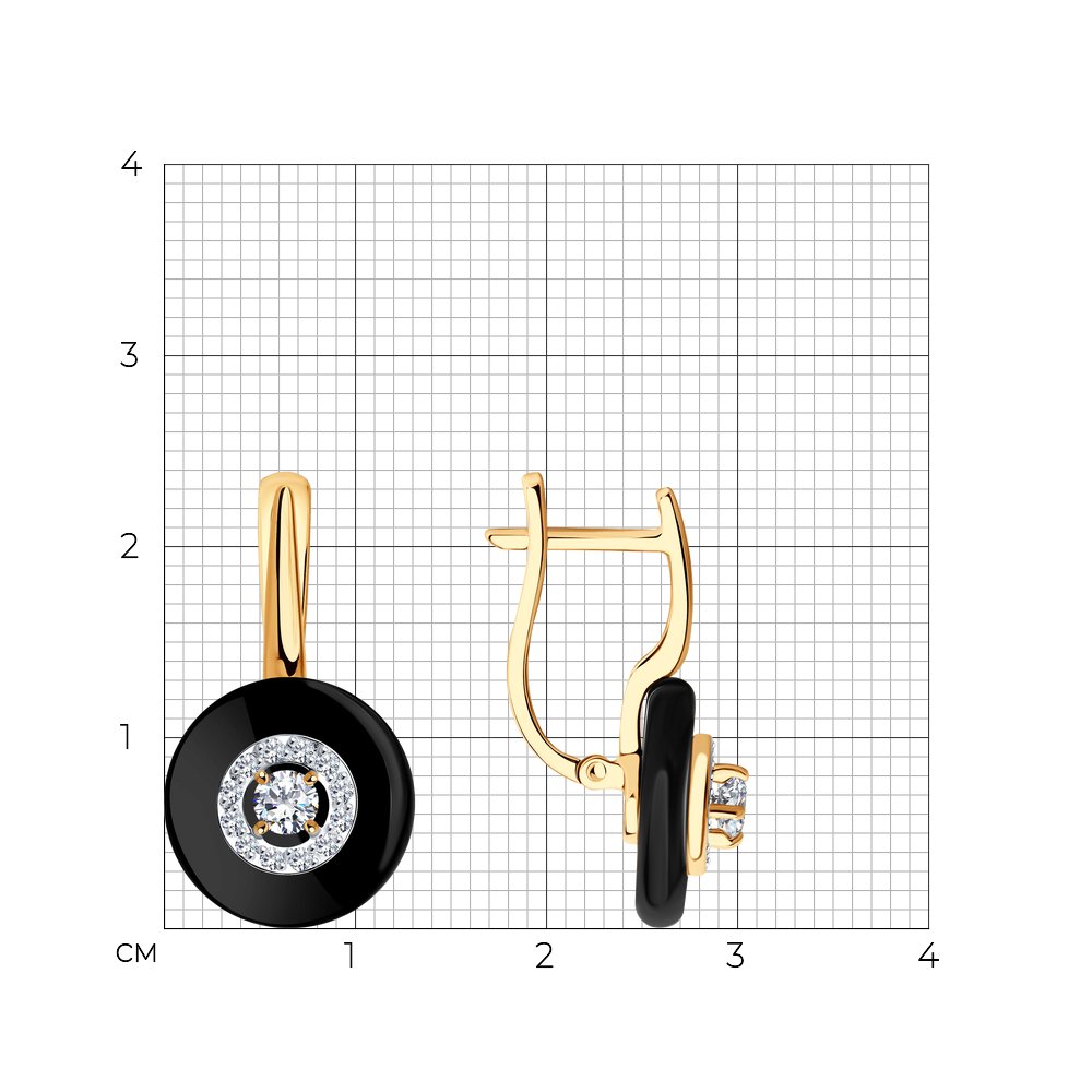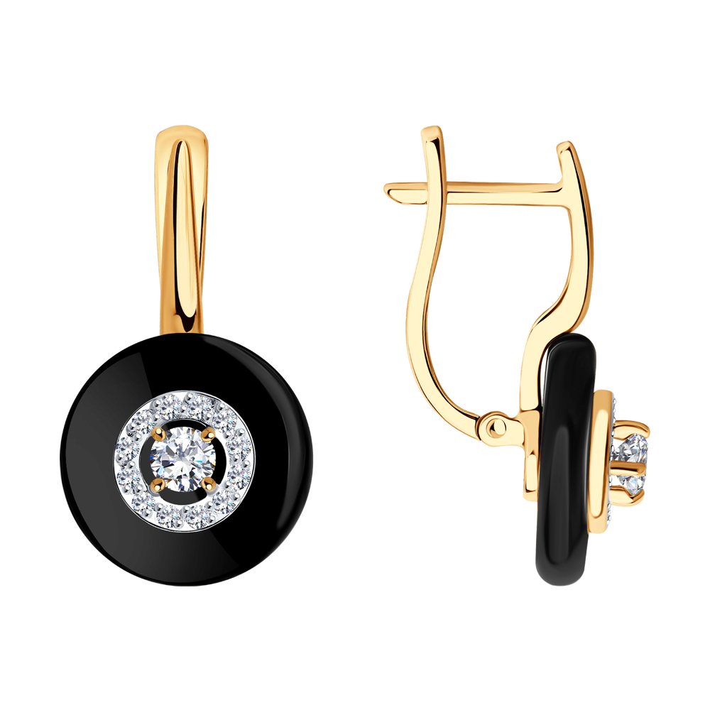 Серьги необычного дизайна с черными агатами и фианитами выполнены из красного золота 585 пробы. Оригинальный образ стильного украшения несомненно привлечет внимание окружающих: эффектное сочетание сверкающих фианитов на фоне великолепного агата выглядит нарядно и элегантно. Серьги идеально украсят вечерний или праздничный образ. Приобретайте украшение по выгодной цене в магазинах Мир Золота.