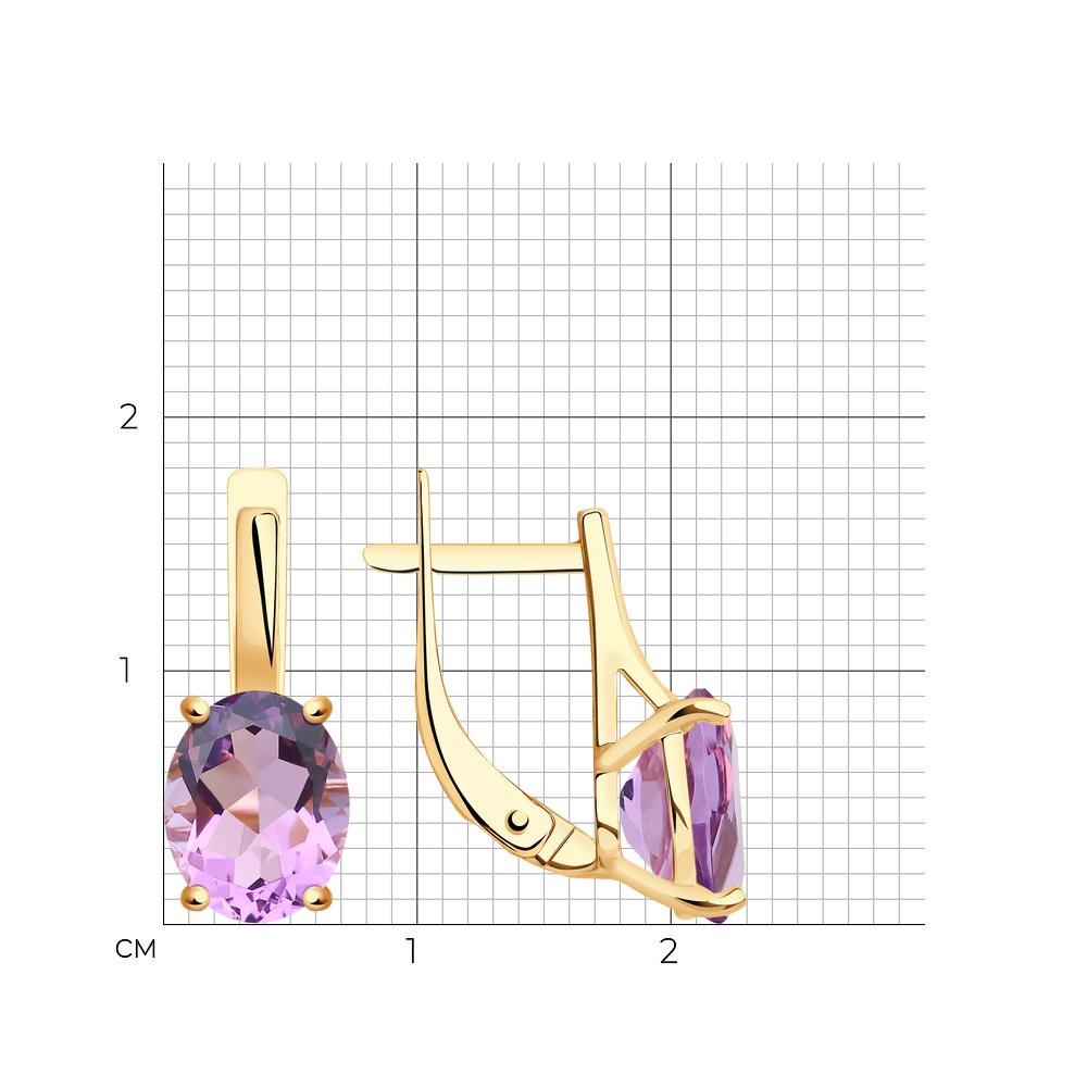 Прекрасные серьги из красного золота 585 пробы с нежным переливчатым сиянием натуральных аметистов отлично смотрятся и комфортны в носке. Привлекательный аксессуар в лаконичном дизайне будет эффектным подарком, подчеркивающим красоту и женственность владелицы. Приобретайте ювелирное украшение по выгодной цене в магазинах Мир Золота.