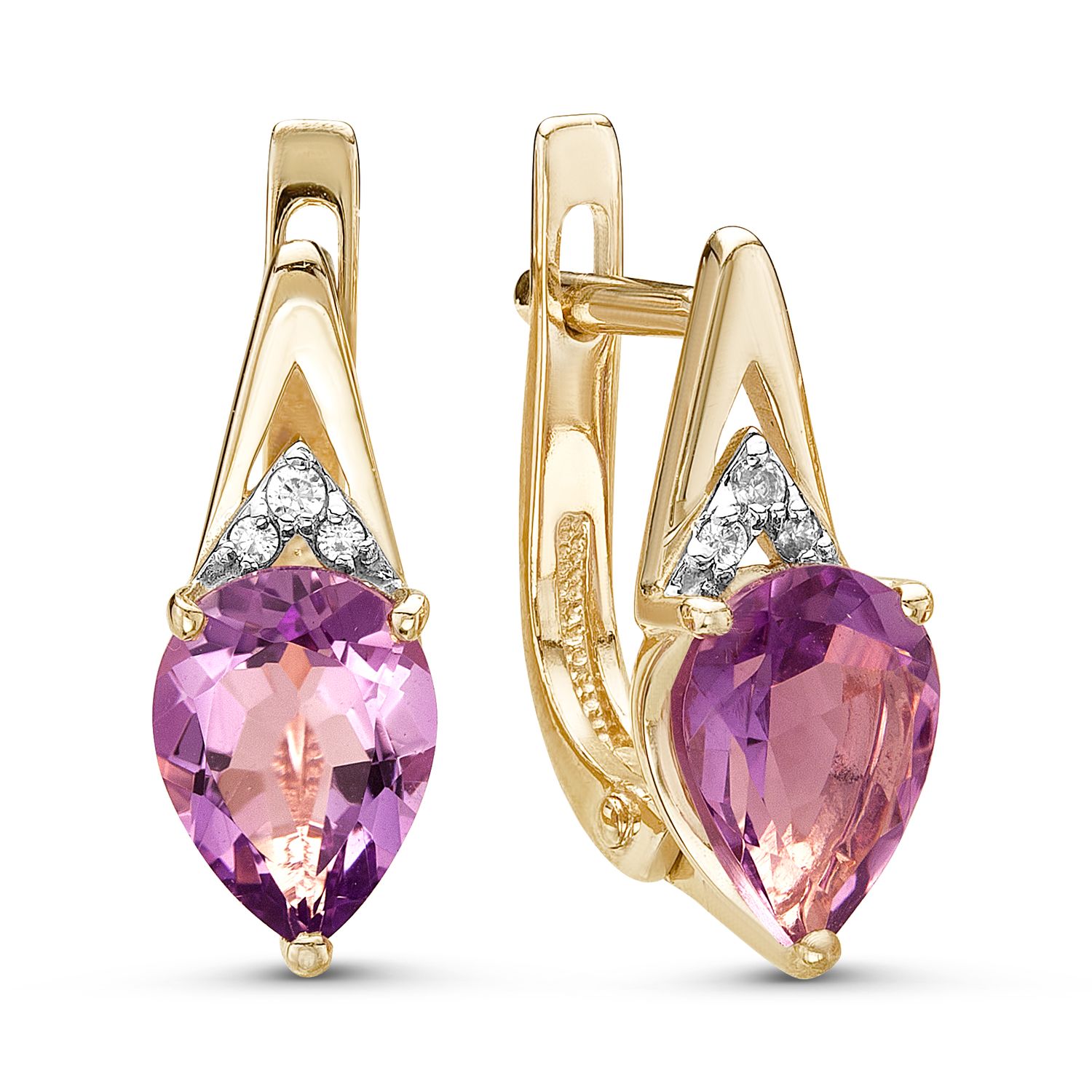 Изящные серьги из красного золота 585 пробы декорированы прекрасными аметистами насыщенного оттенка и прозрачными фианитами. Полудрагоценные аметисты красивой грушевидной огранки, подчеркнутые капельками фианитов, составляют очаровательный декор украшения, и покоряют своей красотой и сиянием. Приобретайте серьги для себя или в подарок по выгодной цене в магазинах Мир Золота.