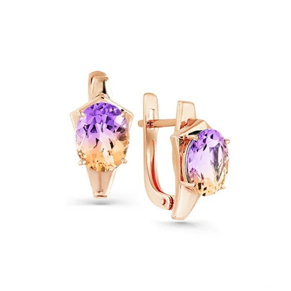Серьги из красного золота 585 пробы с аметринами станут заметным акцентом современного женского образа. Лаконичный дизайн дополняет волшебный блеск обворожительных камней, украшение притягивает внимание, и смотрится стильно и женственно. Приобретайте ювелирное украшение для себя или в подарок по выгодным ценам в магазинах Мир Золота.