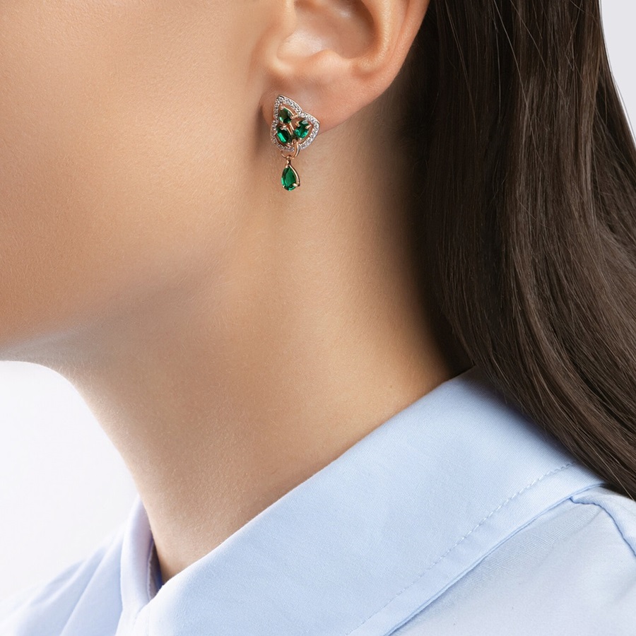 —Серьги из красного золота с гидротермальными изумрудами и фианитами