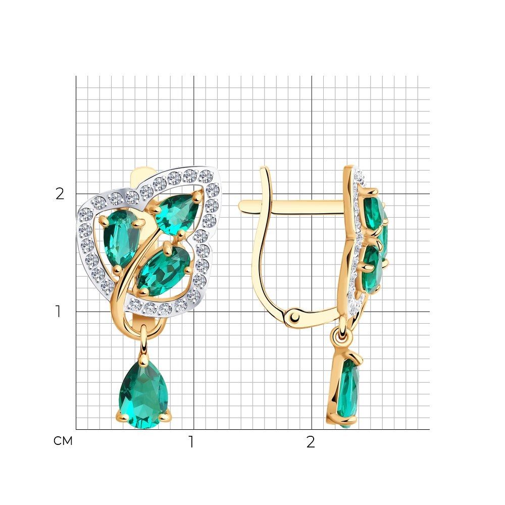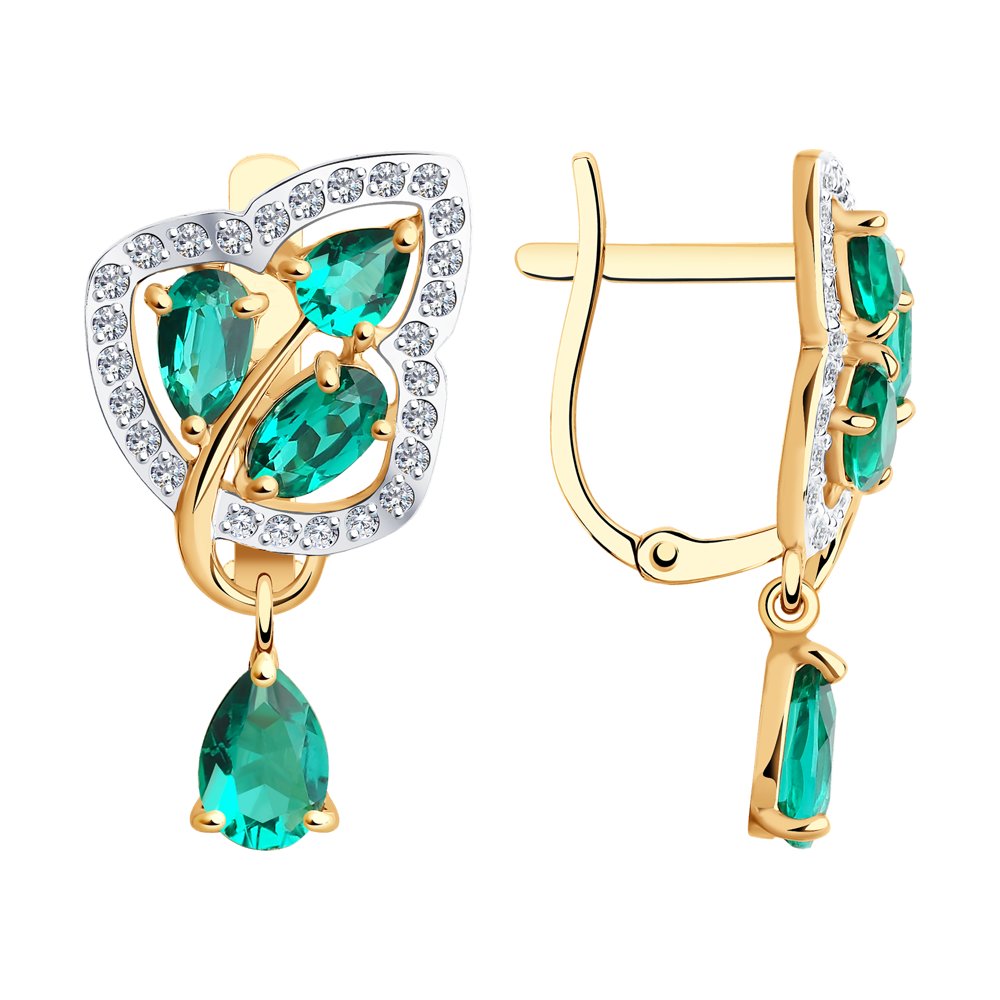 Серьги из красного золота с гидротермальными изумрудами и фианитами