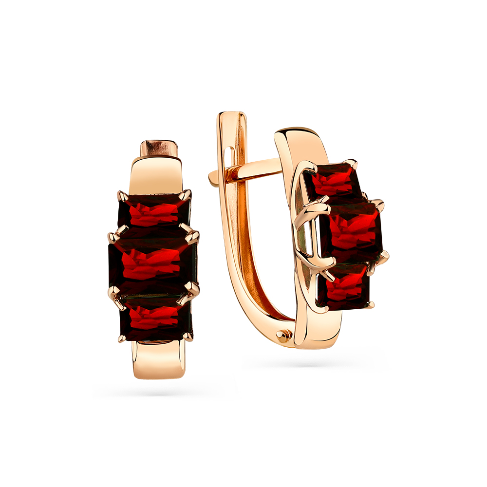 Великолепные женские серьги изготовлены из красного золота 585 пробы и оригинально декорированы натуральными гранатами. Мягкий блеск драгоценного металла гармонично дополняет обворожительное сияние насыщенных ярких камней. Украшение эффектно подчеркнет красоту и изысканность современного образа владелицы. Приобретайте золотое украшение для себя или в подарок выгодно в магазинах Мир Золота.