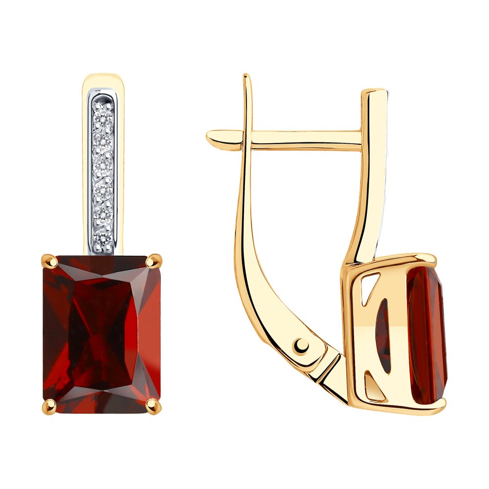 Великолепные серьги из красного золота 585 пробы украшены камнями натурального граната и прозрачных фианитов. Элегантная форма огранки гранатов раскрывает их природную красоту и насыщенное сияние, а дорожки искристых фианитов дополняют яркий образ украшения. Тип замка: английский. Приобретайте ювелирное украшение в подарок по выгодной цене в магазинах Мир Золота.