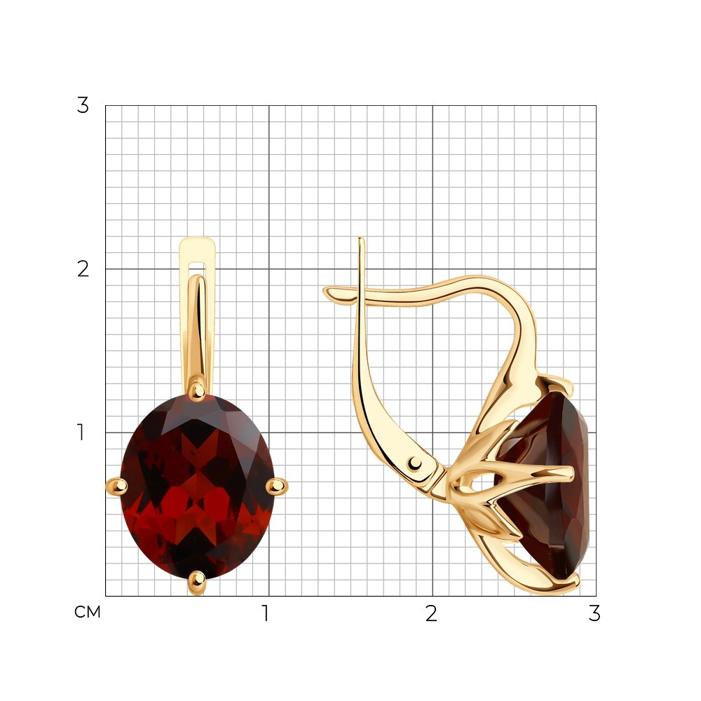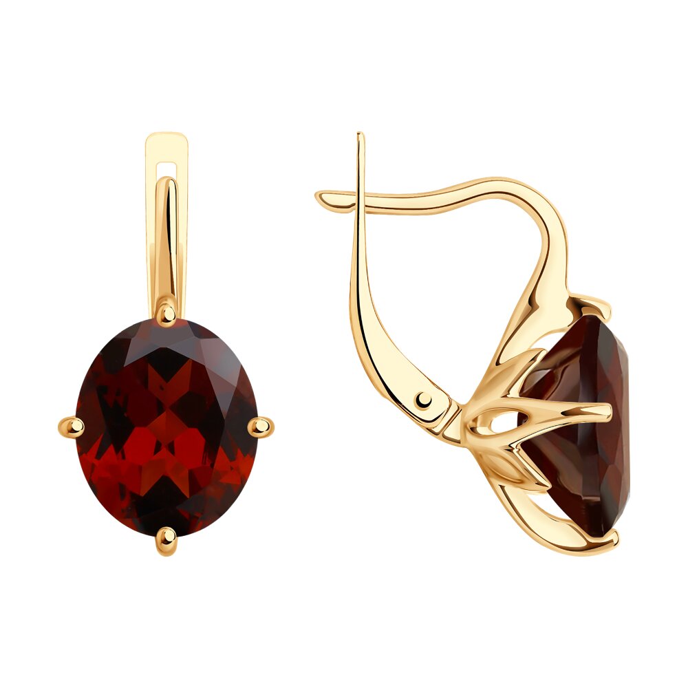 Превосходные серьги с крупными камнями гранатов выполнены из красного золота 585 пробы. Воплощение элегантности и женственности - украшение приковывает взгляд, яркие камни эффектно переливаются на свету. Серьги особенно роскошно смотрятся с другими аксессуарами из комплекта, и сделают образ владелицы неотразимым. Приобретайте ювелирное украшение выгодно в магазинах Мир Золота.