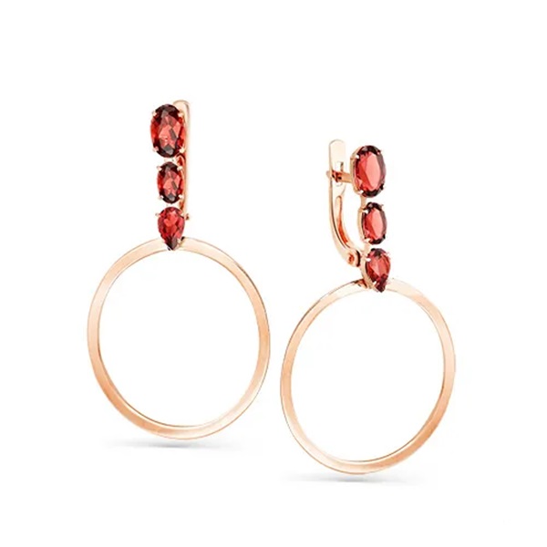Очаровательные серьги с подвесками в виде колец выполнены из красного золота 585 пробы и декорированы натуральными гранатами. Утонченный современный дизайн с изумительным блеском красных камней отлично дополнит стильный женственный образ обладательницы. Приобретайте украшение для себя или в подарок близким по выгодной цене в магазинах Мир Золота.