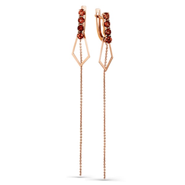 Длинные утонченные серьги с подвесками выполнены из красного золота 585 пробы и декорированы натуральными гранатами, подчеркнут очарование и привлекательность владелицы. Изысканное украшение с ярким блеском гранатов смотрится стильно и женственно, и будет идеальным дополнением современных образов. Приобретайте ювелирное украшение по выгодным ценам в Мир Золота.