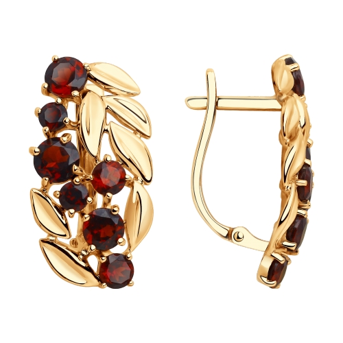 Притягательные серьги интересного дизайна, в виде золотых веточек с гроздьями натуральных насыщенно-красных гранатов, выполнены из красного золота 585 пробы. Украшение эффектно дополнит очаровательный женственный образ, и подчеркнут безупречный вкус своей обладательницы. Тип замка - английский, надёжно зафиксирует украшение. Приобретайте серьги по выгодной цене в магазинах Мир Золота.