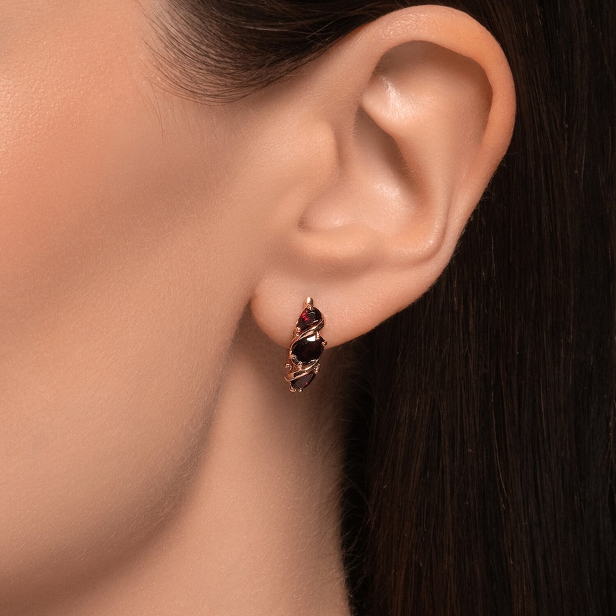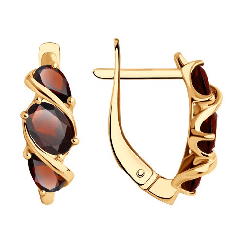 Замечательные серьги из красного золота 585 пробы с натуральными гранатами выглядят очень женственно и привлекательно. Изящный декор с ярким гранатами в обрамлении плавных линий благородного золота, эффектно преобразит привычный женский образ, дополнив его притягательным очарованием и цветным сиянием камней. Приобретайте ювелирное украшение по выгодным ценам в магазинах Мир Золота.