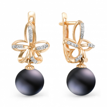 Классические серьги с черным жемчугом в обрамлении сияющих фианитов, из красного золота 585 пробы. Украшение с притягательным сиянием ювелирных камней отлично украсит изысканный женственный образ, и будет великолепно смотреться в комплекте с другими аксессуарами. Приобретайте драгоценные серьги для себя или в подарок по выгодным ценам в магазинах Мир Золота.
