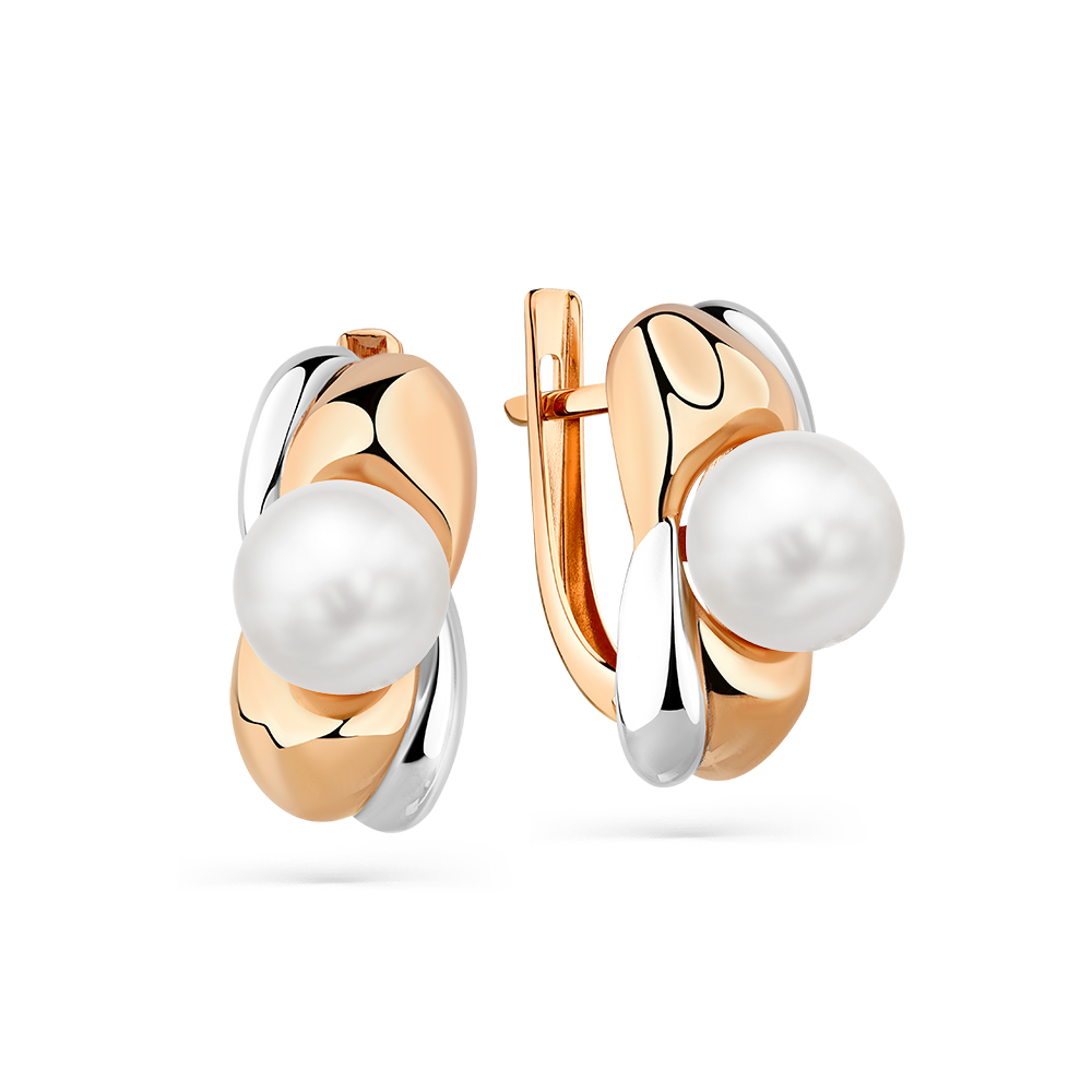 Необычный дизайн серег из красного и белого золота 585 пробы с натуральным жемчугом привлечет заинтересованные взгляды окружающих, и станет оригинальным дополнением стильного образа. Объемные серьги с утонченным и нежным блеском натуральных жемчужин, в отражении драгоценного металла, эффектно подчеркнут женственность и элегантность владелицы. Приобретайте ювелирное украшение по выгодной цене в магазинах Мир Золота.
