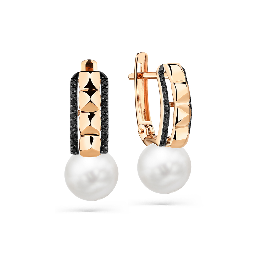 Эффектные серьги из красного золота 585 пробы с дорожками черных фианитов и белоснежным жемчугом не останутся незамеченными. Яркое украшение привлекает внимание контрастным блеском камней и благородного золота, и изысканно подчеркнет стильный и выразительный образ владелицы. Приобретайте ювелирное украшение для себя или в подарок по выгодным ценам в магазинах Мир Золота.