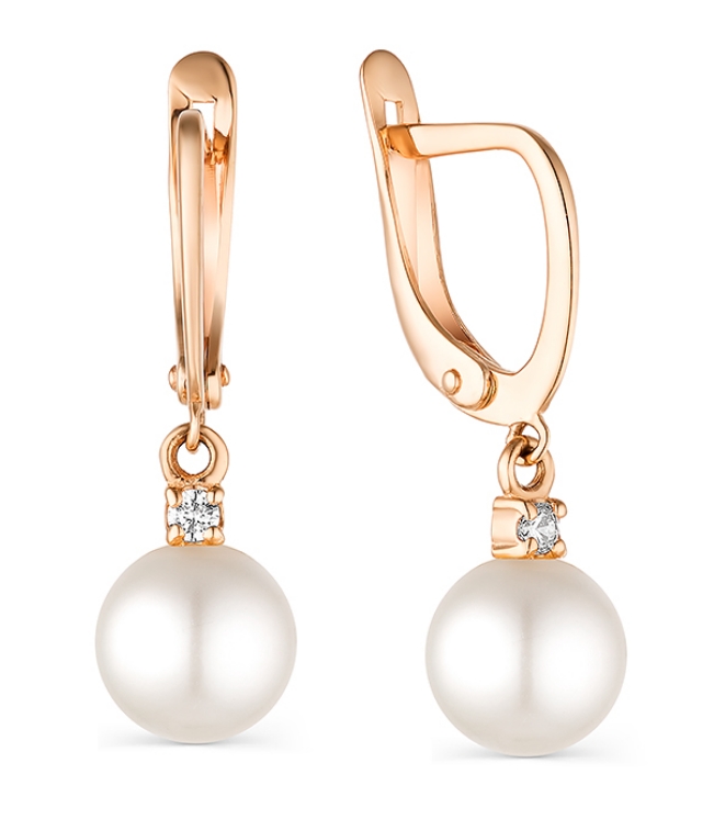 Серьги с подвесками с натуральным белым жемчугом и прозрачными фианитами, из красного золота 585 пробы, станут изысканным украшением женственного образа. Белоснежные жемчужины привлекают внимание своей неповторимой красотой и очарованием, капельки сверкающих фианитов идеально дополняют нежный блеск жемчуга. Приобретайте серьги для прекрасного подарка, по выгодной цене в магазинах Мир Золота.