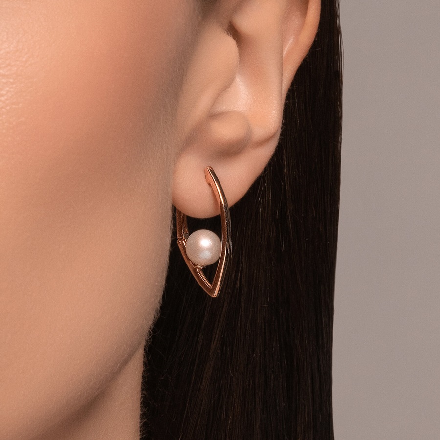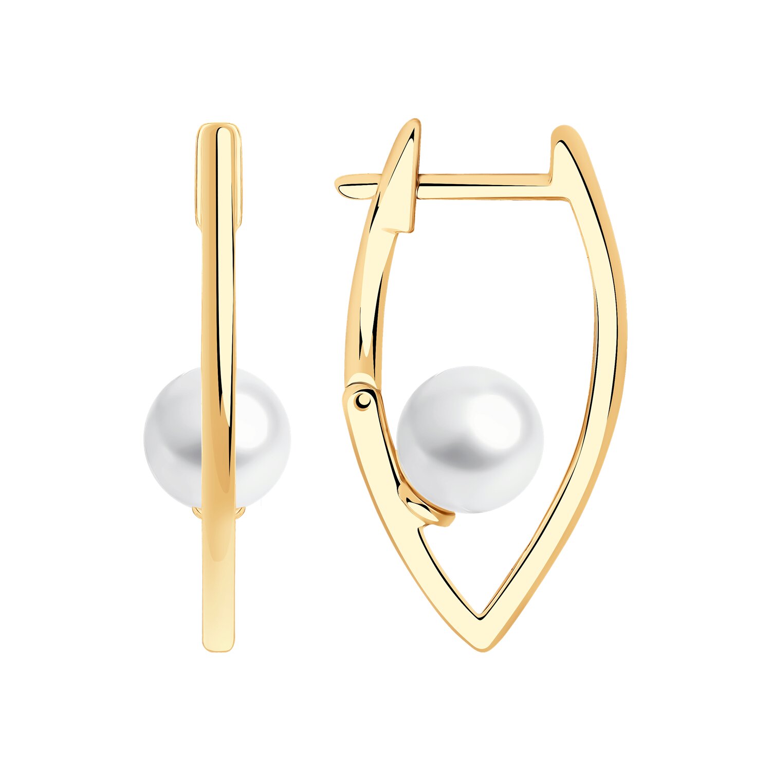Стильные серьги из красного золота 585 пробы, украшенные белоснежным жемчугом, придутся по вкусу любительницам современного ювелирного дизайна. Эффектное украшение с нежными жемчужинами обращает на себя внимание, и отлично дополнит модные образы современной леди. Вид застежки: английский. Приобретайте ювелирное украшение по выгодной цене в магазинах Мир Золота.