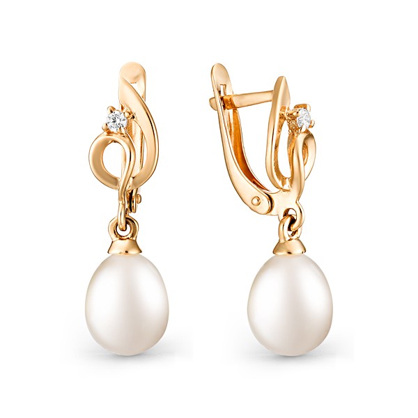 Серьги с подвесками из красного золота 585 пробы в изящном дизайне с белым жемчугом и фианитами смотрятся очень женственно и очаровательно. Украшение с белоснежными жемчужинами и капельками искристых фианитов замечательно украсит как базовые повседневные, так и нарядные праздничные образы. Тип замка: английский. Приобретайте ювелирное украшение по выгодным ценам в магазинах Мир Золота.