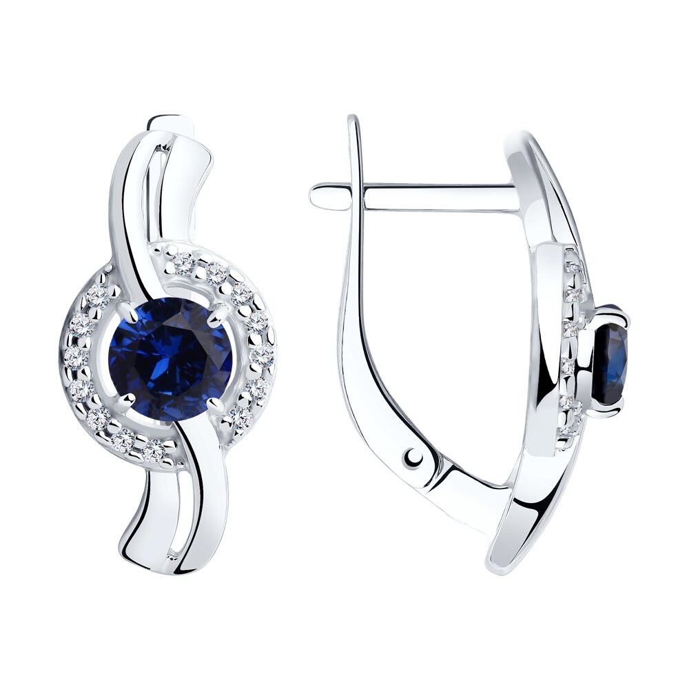 Серьги из серебра 925 пробы выполнены в изящном дизайне, с сапфировыми корундами в обрамлении искристых фианитов. Эффектное сочетание яркого сияния синих корундов с мерцающими фианитами и холодным блеском родированного серебра, станет привлекательным и выразительным акцентом женственного образа. Приобретайте ювелирное украшение для себя или в подарок по выгодным ценам в магазинах Мир Золота.