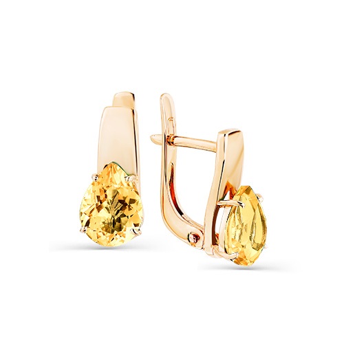 Серьги на английском замке, из красного золота 585 пробы, украшены привлекательными цитринами грушевидной формы огранки. Золотистые цитрины с прозрачным нежным сиянием на фоне драгоценного металла акцентируют на себе внимание, очаровательное украшение станет заметной деталью женственного образа. Приобретайте ювелирное украшение по выгодной цене в магазинах Мир Золота.