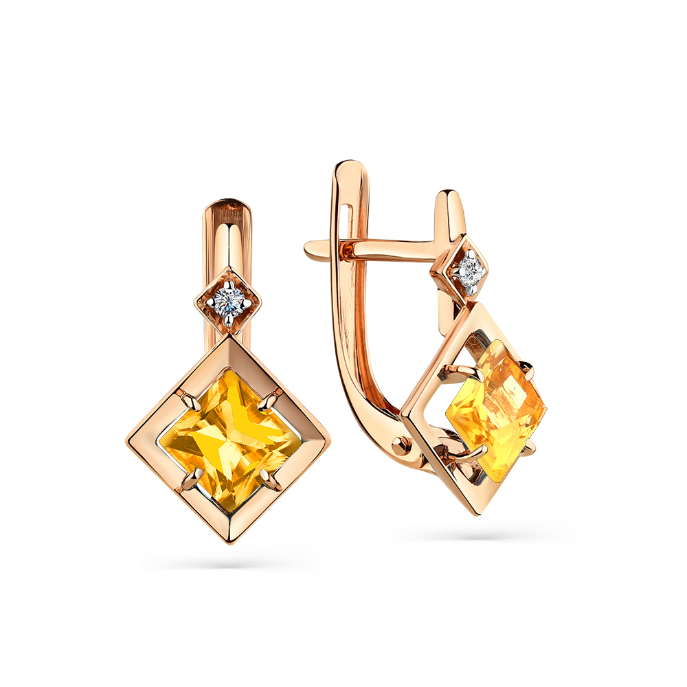 —Серьги из красного золота с цитринами и фианитами