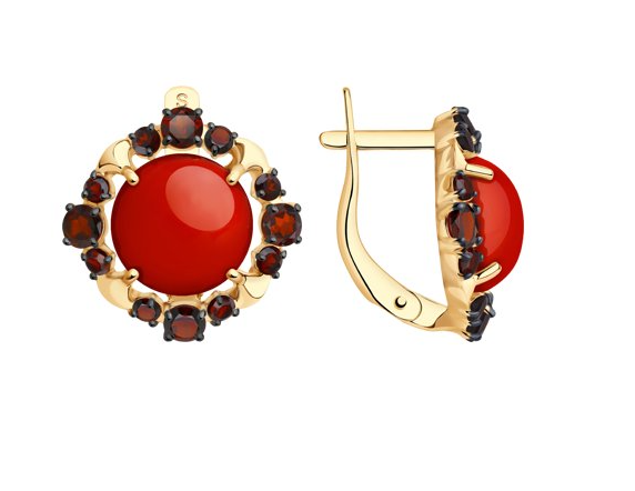 Серьги на английском замке с синтетическими кораллами и гранатами выполнены из красного золота 585 пробы. Яркое украшение эффектно выглядит, и, несомненно, привлечет внимание окружающих, подчеркнув изысканность образа и индивидуальность владелицы. Приобретайте ювелирное украшение для себя или в подарок по выгодной цене в магазинах Мир Золота.