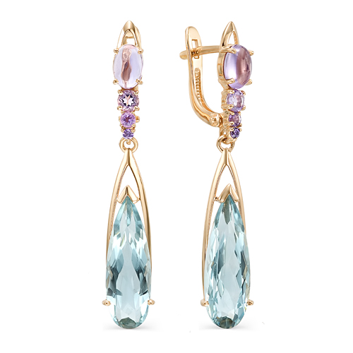 Серьги с подвесками из красного золота 585 пробы с миксом камней не оставят женщину равнодушной. Нежное сияние топазов и фианитов превосходно украсит женственный образ, и подчеркнет утонченный вкус и очарование владелицы. Тип замка: английский. Покупайте замечательное украшение для себя или в подарок выгодно в магазинах Мир Золота.