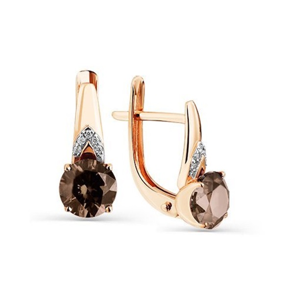 Серьги на английском замке с раухтопазом и фианитами выполнены из красного золота 585 пробы в привлекательном дизайне. Серьги очень изящно и аккуратно смотрятся и станут универсальным аксессуаром для любого наряда, дополнив женский образ изысканным блеском и очарованием. Приобретайте драгоценное ювелирное украшение по выгодным ценам в магазинах Мир Золота.