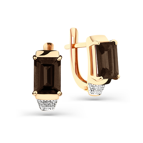 Привлекательные серьги из красного золота 585 пробы с раухтопазами смотрятся ярко и современно. Золотое украшение подойдет для прекрасного подарка, а также идеально дополнит стильный повседневный образ, подчеркнув красоту и женственность владелицы. Тип замка - английский, надёжно зафиксирует украшение. Приобретайте серьги по выгодным ценам в магазинах Мир Золота.