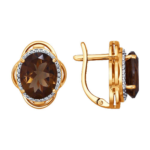 Серьги с раухтопазами и фианитами выполнены в классическом стиле из красного золота 585 пробы. Выразительные раухтопазы, подчеркнутые сверкающими фианитами, выглядят объемно и красиво переливаются на свету. Украшение с насыщенным блеском камней смотрится элегантно и благородно, и станет яркой деталью неотразимого образа. Приобретайте ювелирное украшение выгодно в магазинах Мир Золота.
