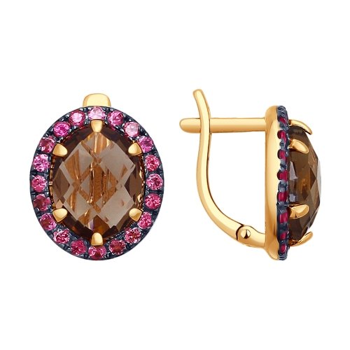 Серьги из красного золота с раухтопазами и родолитами
