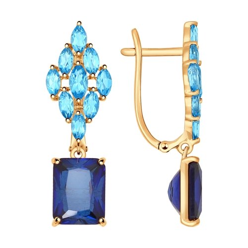 Яркие серьги с подвесками с сапфировыми корундами и голубыми топазами выполнены из красного золота 585 пробы. Эффектное сочетание корундов и топазов, подчеркнутых благородным сиянием золота, приковывает взгляд. Завораживающее украшение станет главной деталью коктейльного или вечернего образа. Приобретайте прекрасные серьги в подарок по выгодной цене в магазинах Мир Золота.