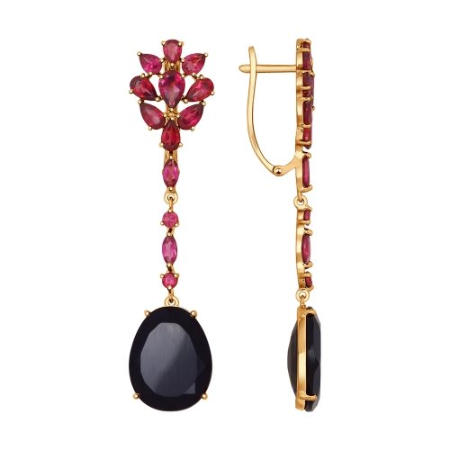 Серьги из красного золота с ониксом и родолитами