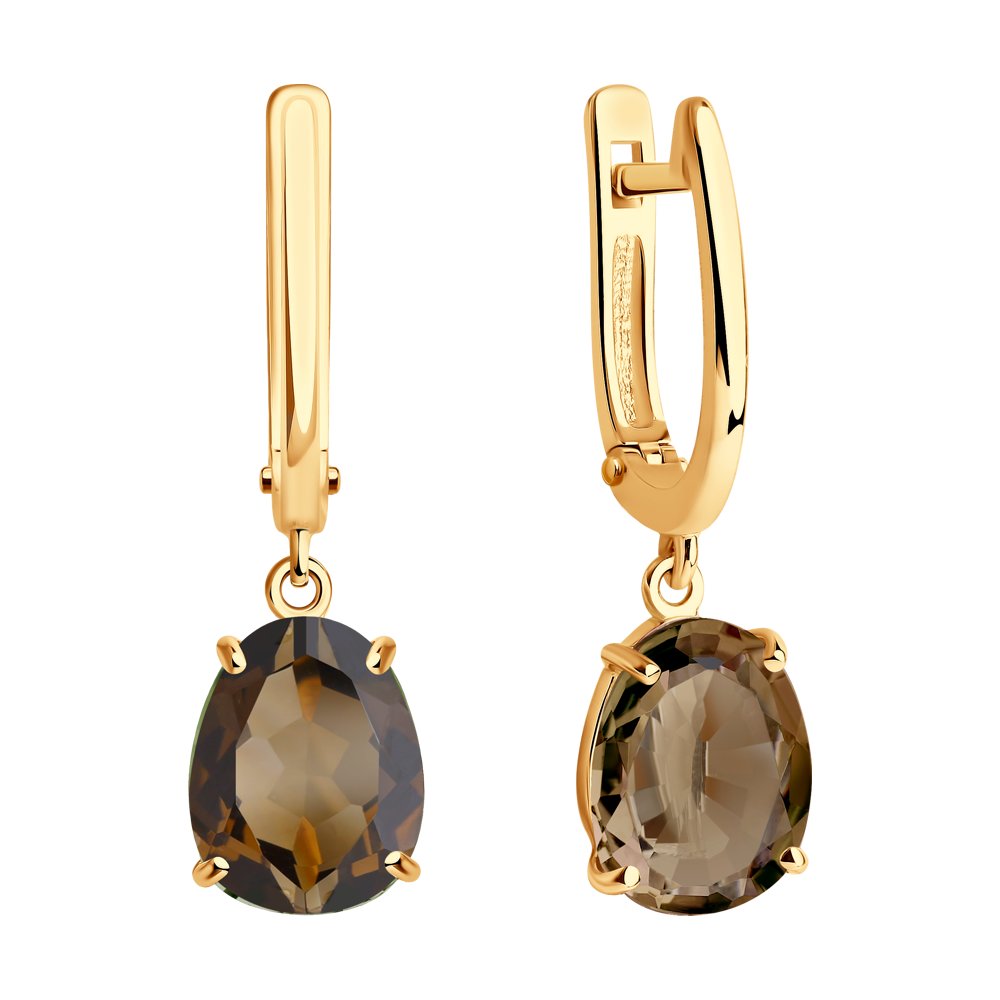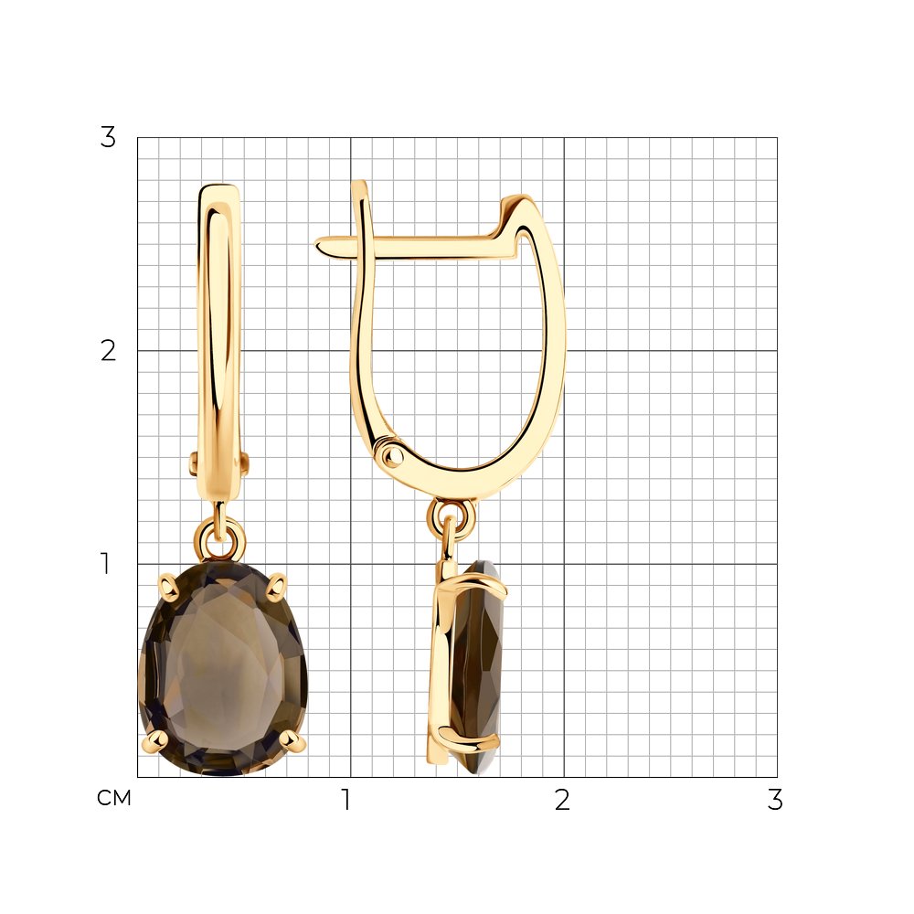 Серьги из красного золота с раухтопазом