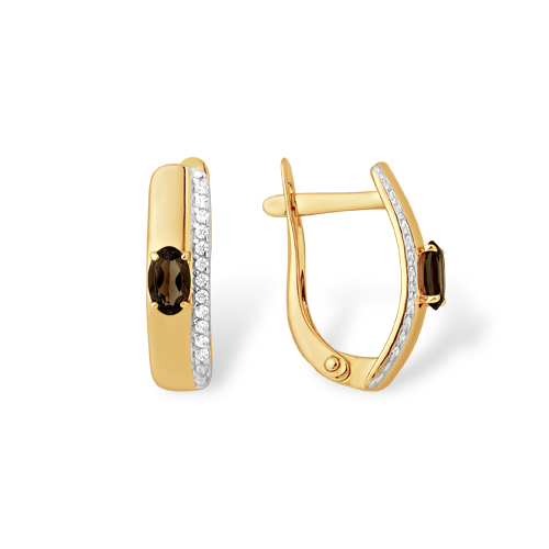 Стильные серьги с раухтопазами и строгим дорожками из кристальных фианитов выполнены из красного золота 585 пробы. Украшение аккуратно и изящно смотрится, и эффектно украсит женский образ изысканным блеском благородного золота и ювелирных камней. Приобретайте украшение для себя или в подарок по выгодной цене в магазинах Мир Золота.