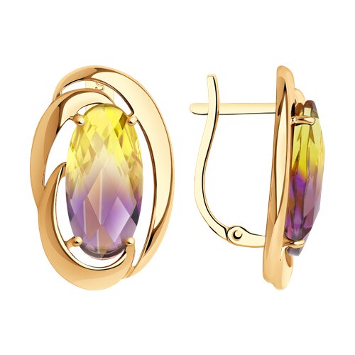 Крупные роскошные серьги из красного золота 585 пробы декорированы превосходными ситаллами объемной формы огранки. Эффектное украшение с обворожительным и неповторимым сиянием камней, в обрамлении плавных линий благородного золота, понравится любительницам крупных ювелирных изделий, и идеально подойдет для нарядных и праздничных образов. Приобретайте великолепные серьги по выгодной цене в магазинах Мир Золота.