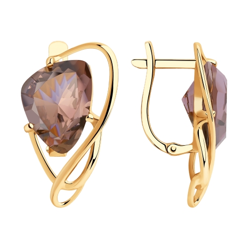 Серьги великолепного современного дизайна выполнены из красного золота 585 пробы и украшены прекрасными ситаллами эффектной формы огранки. Стильные и яркие серьги с притягательным блеском камней станут изысканной деталью неповторимого женственного образа. Тип замка: английский. Приобретайте превосходное украшение в подарок по выгодной цене в магазинах Мир Золота.