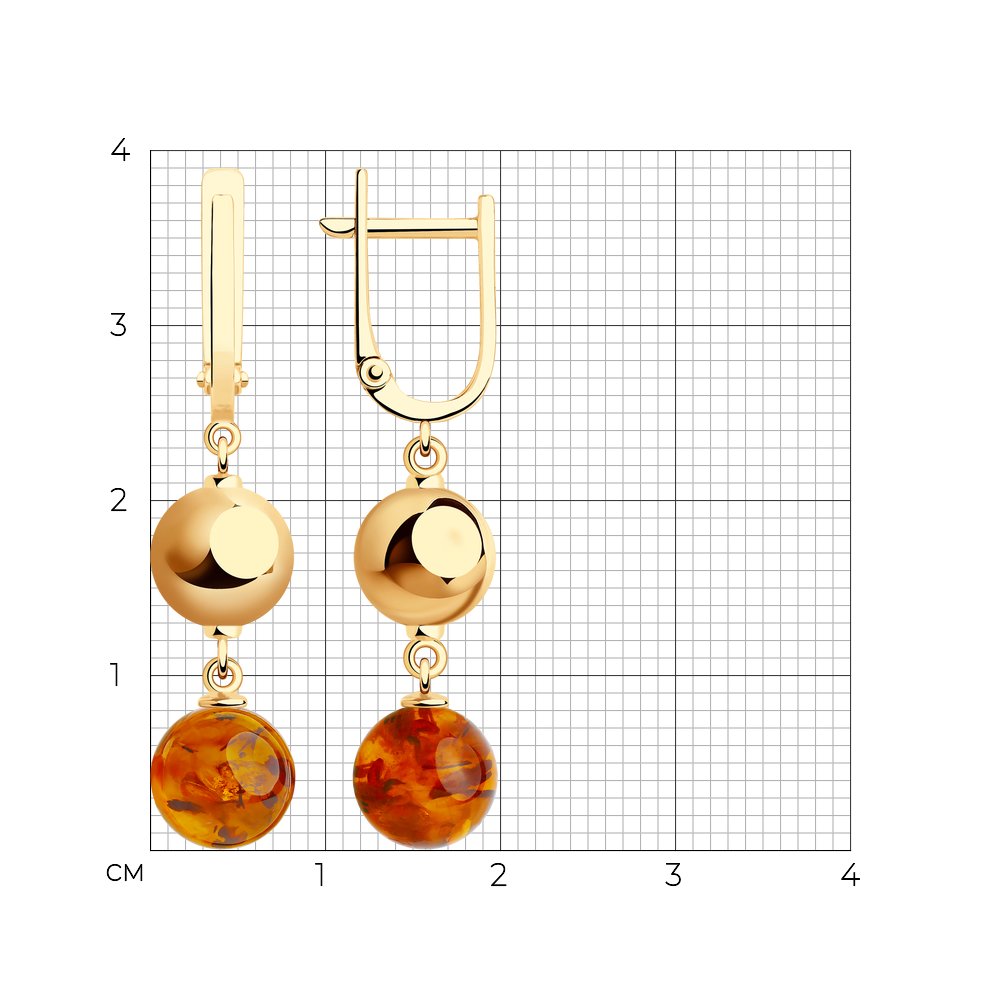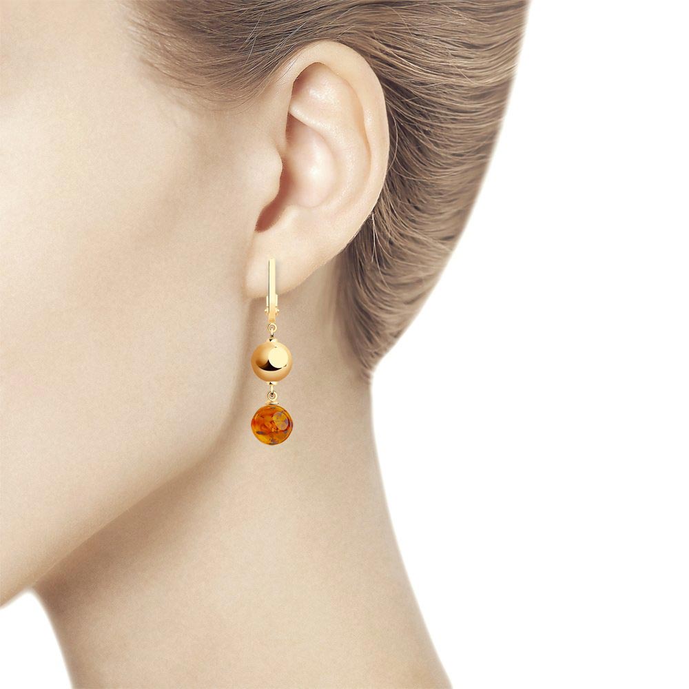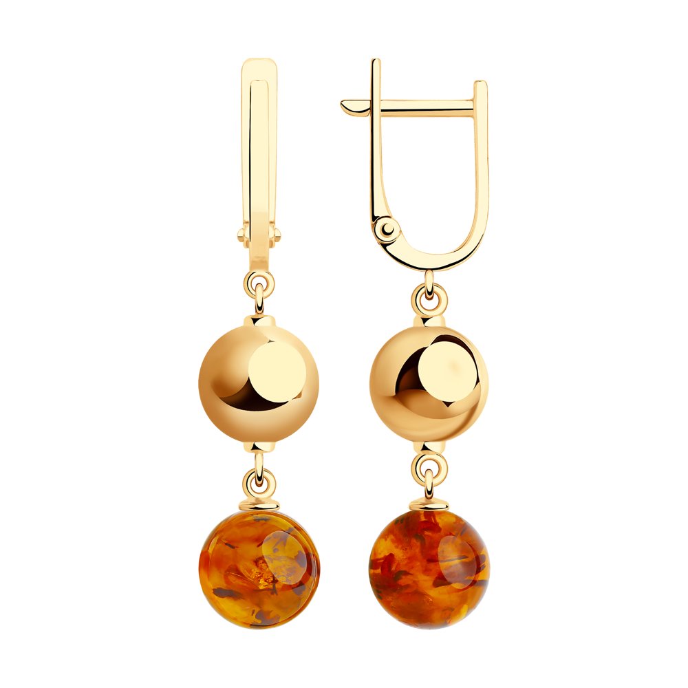 Элегантные серьги на английском замке выполнены из красного золота 585 пробы и декорированы шариками натурального янтаря. Идеальное сочетание благородного золота и завораживающего янтаря смотрится достойно и изысканно, и не оставит женщину равнодушной. Приобретайте серьги привлекательного дизайна по выгодной цене в магазинах Мир Золота.
