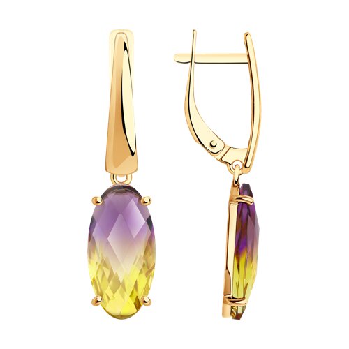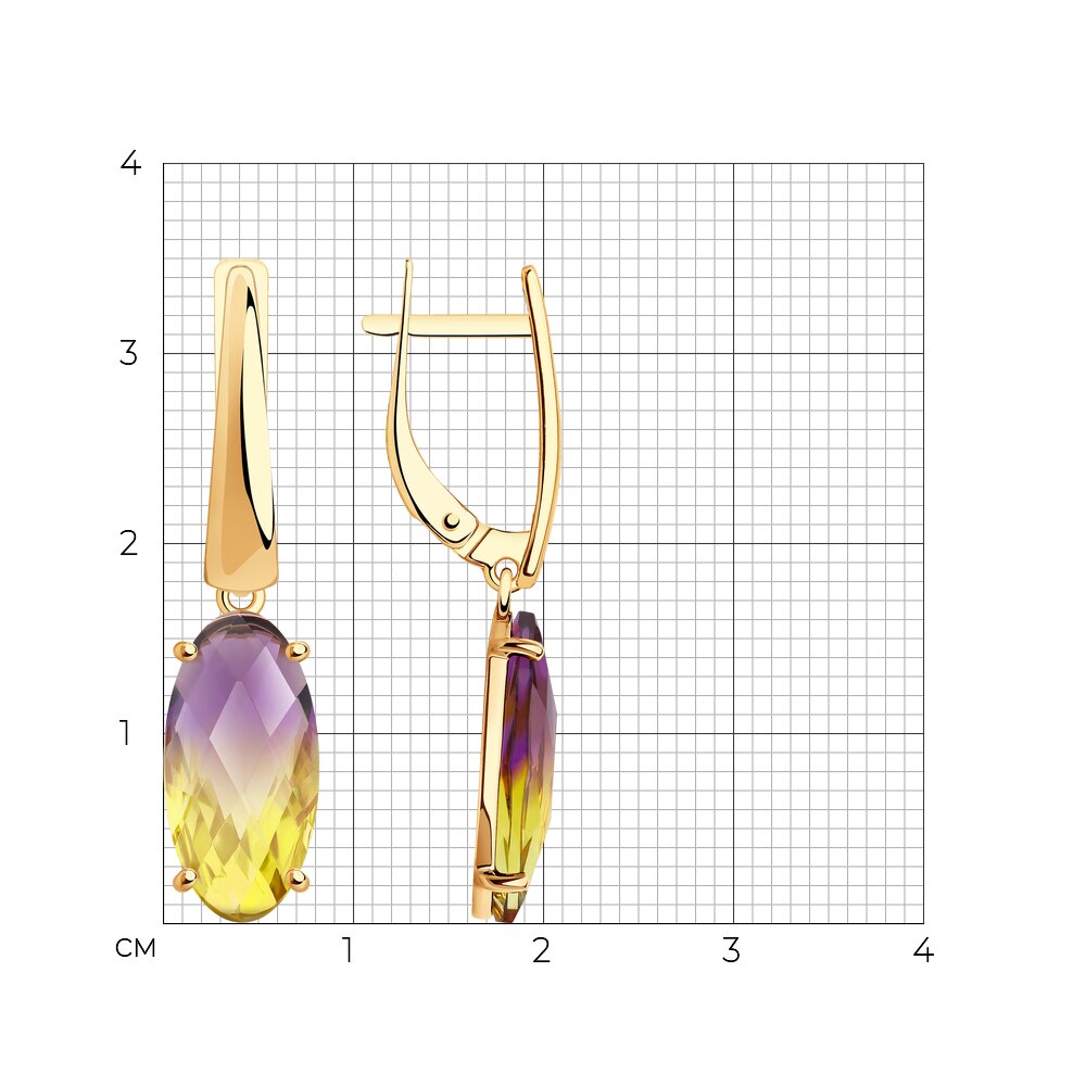 Серьги с подвесками с обворожительными ситаллами выполнены из красного золота 585 пробы. Выразительные ситаллы в сочетании с драгоценным блеском золота приковывают взгляд, изысканная огранка камней эффектно подчеркивает их удивительное сияние и красоту. Тип замка: английский. Приобретайте ювелирные серьги для себя или в подарок выгодно в магазинах Мир Золота.