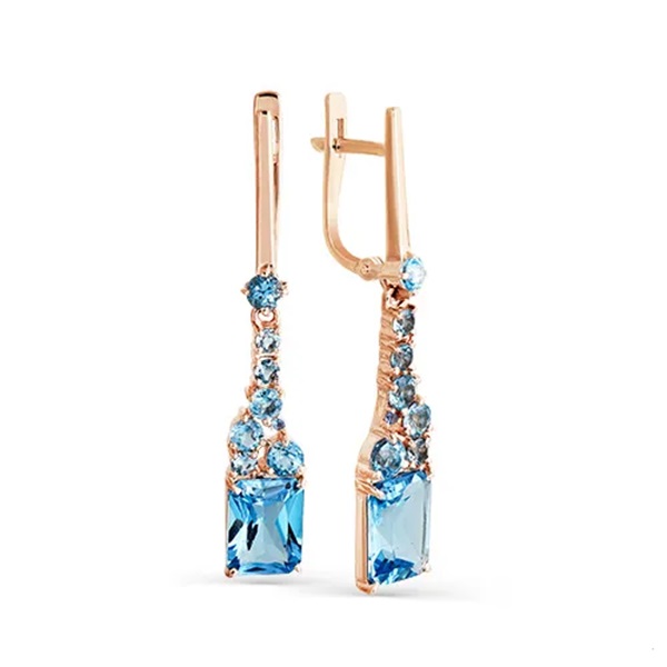 Удлиненные серьги с подвесками, из красного золота 585 пробы, с миксом полудрагоценных топазов swiss и цветных фианитов покоряют своим изысканным блеском. Завораживающее сияние композиции из лазурных камней не оставит женщину равнодушной, и великолепно украсит неповторимый вечерний или праздничный образ. Тип замка: английский. Приобретайте ювелирное украшение в подарок по выгодной цене в магазинах Мир Золота.