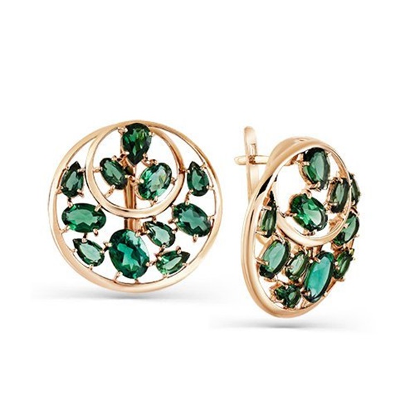 Серьги на английском замке с миксом камней синтетического турмалина выполнены из красного золота 585 пробы. Эффектная композиция из камней насыщенно-зеленого оттенка завораживает своим сиянием, и сделает женский образ более ярким и изысканным. Украшение будет идеальным подарком, подчеркивающим красоту и женственность владелицы. Приобретайте великолепные серьги по выгодной цене в магазинах Мир Золота.